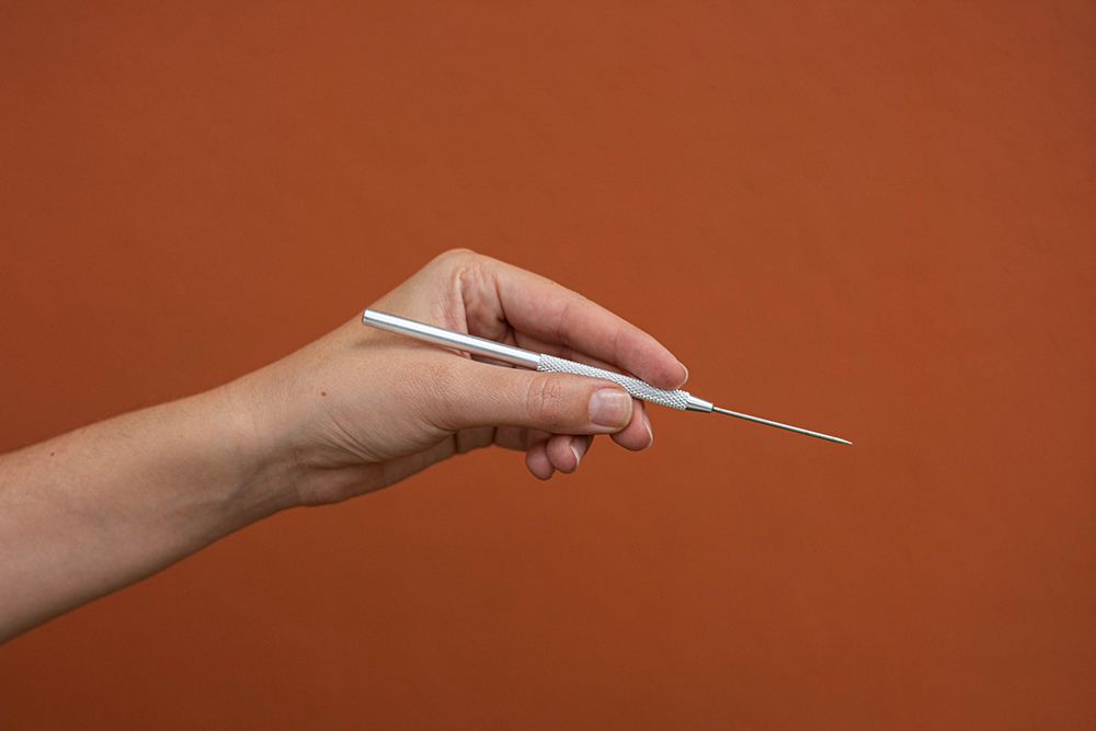 Agulha metálica para furar/eliminar bolhas da argila durante o processo de modelagem.