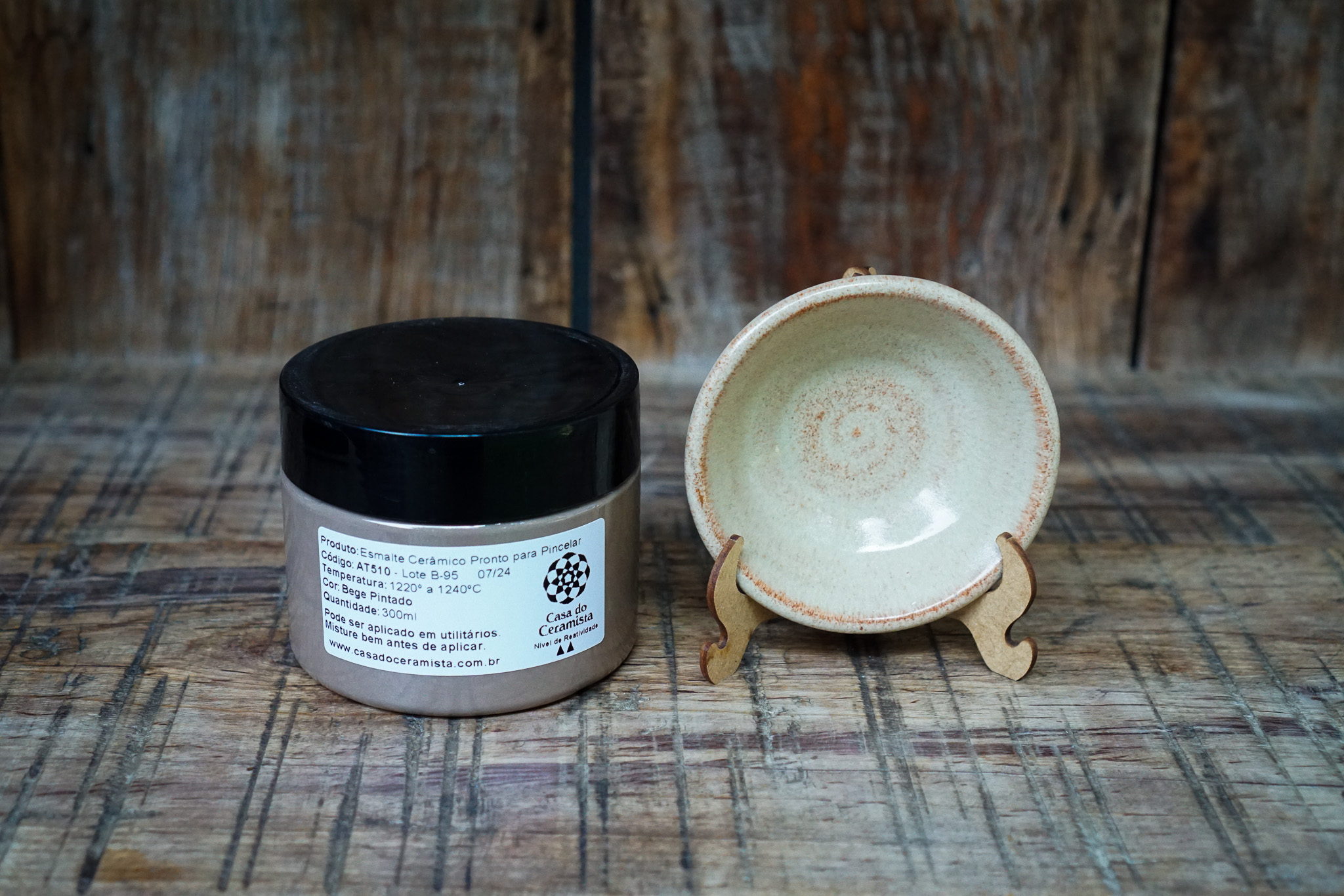 Este vidrado não contém chumbo em sua composição e pode ser aplicado em utilitários e peças que vão ao forno convencional, micro-ondas e máquina de lavar louça.