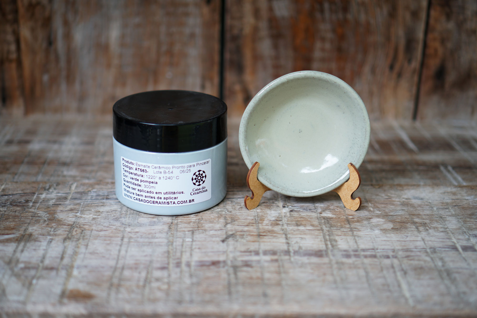 Este vidrado não contém chumbo em sua composição e pode ser aplicado em utilitários e peças que vão ao forno convencional, micro-ondas e máquina de lavar louça.