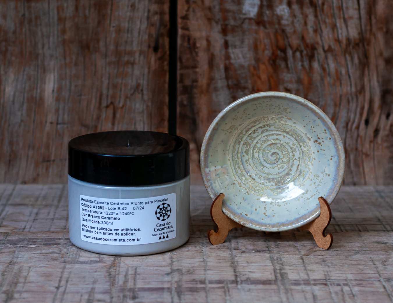 Este vidrado não contém chumbo em sua composição e pode ser aplicado em utilitários e peças que vão ao forno convencional, micro-ondas e máquina de lavar louça.