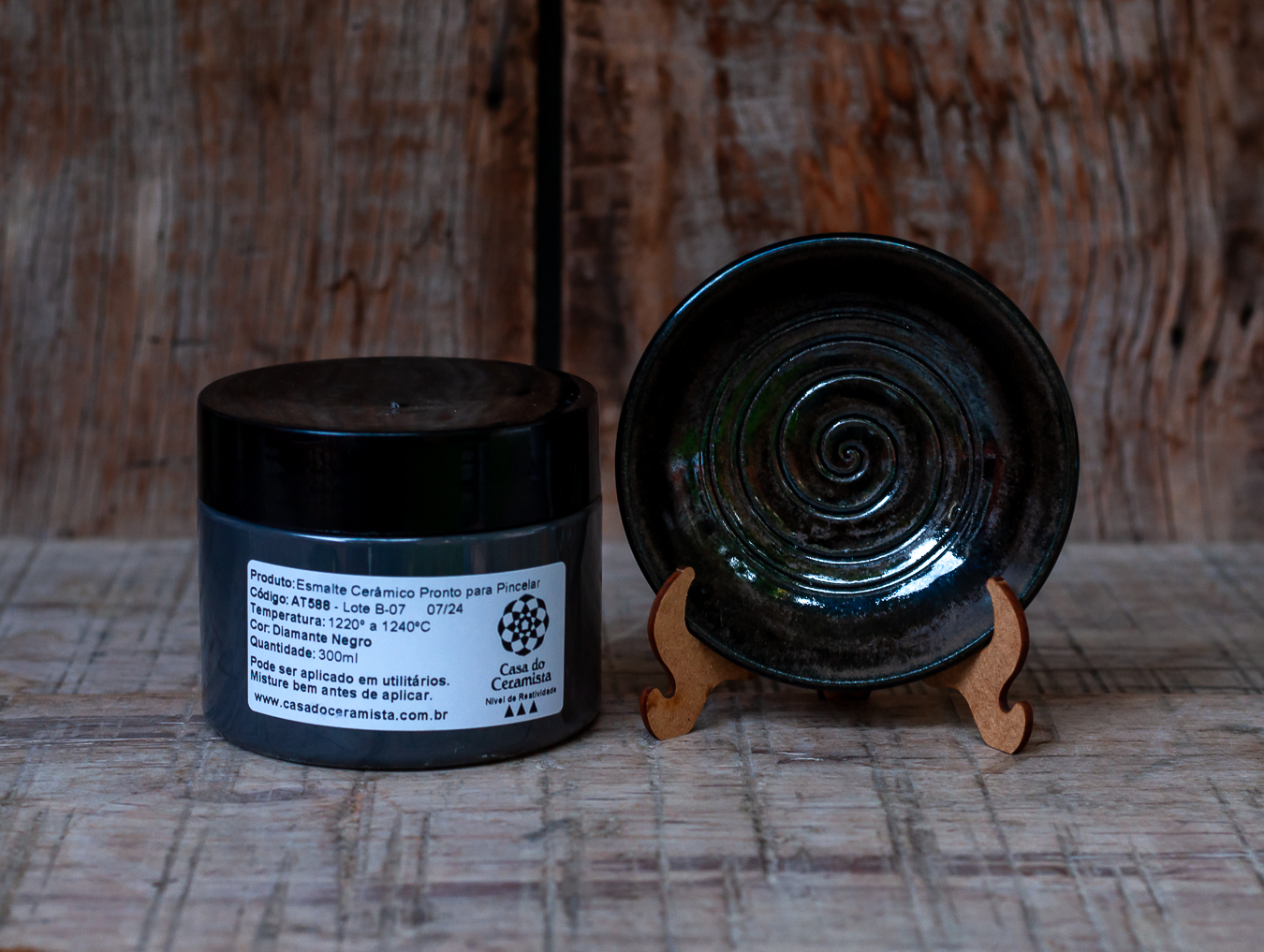 Este vidrado não contém chumbo em sua composição e pode ser aplicado em utilitários e peças que vão ao forno convencional, micro-ondas e máquina de lavar louça.