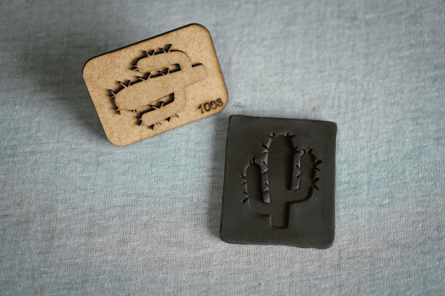 Carimbo em MDF com Pegador Auxiliar - Palavra "CACTUS"