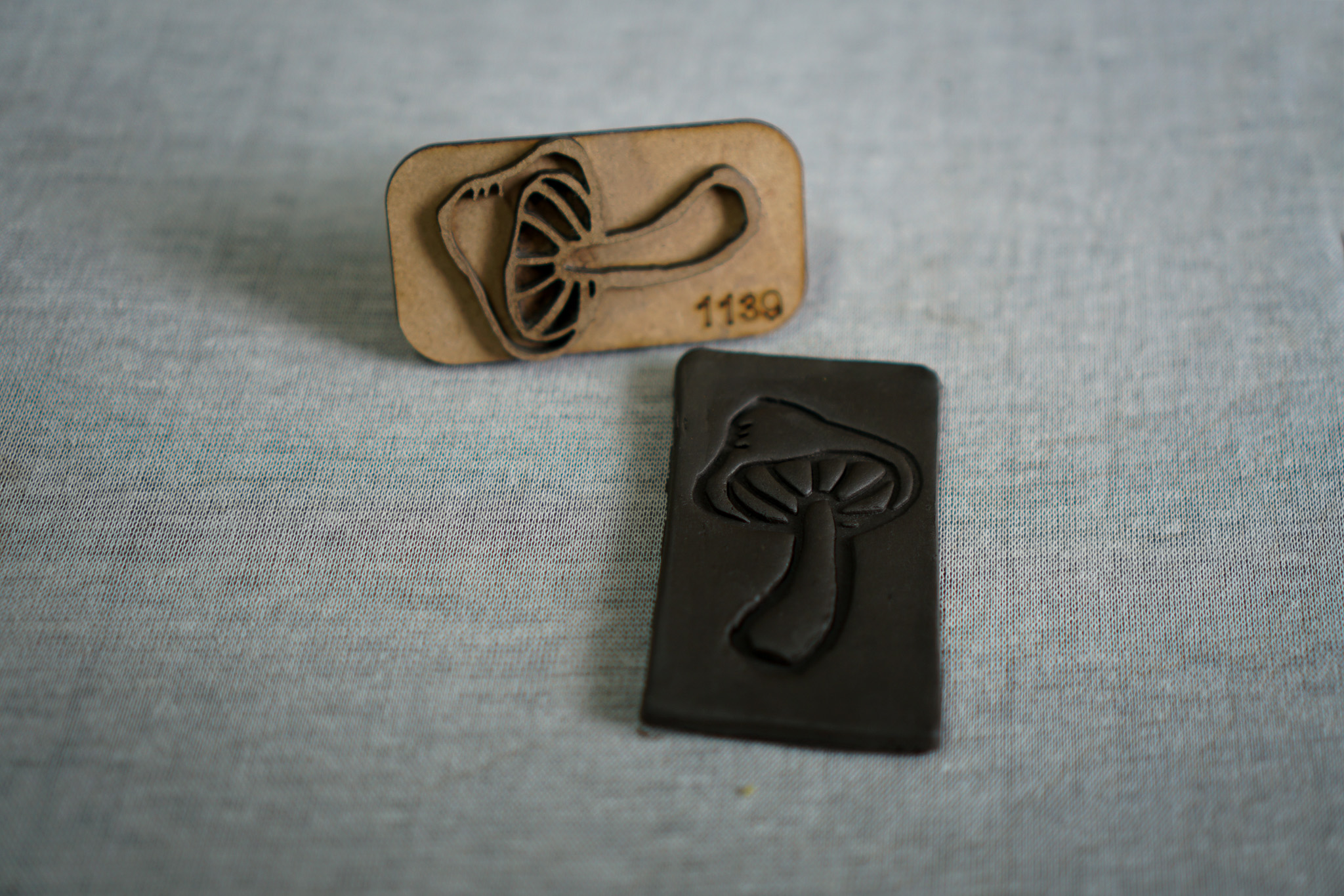 Carimbo em MDF com Pegador Auxiliar - Palavra "COGUMELO"