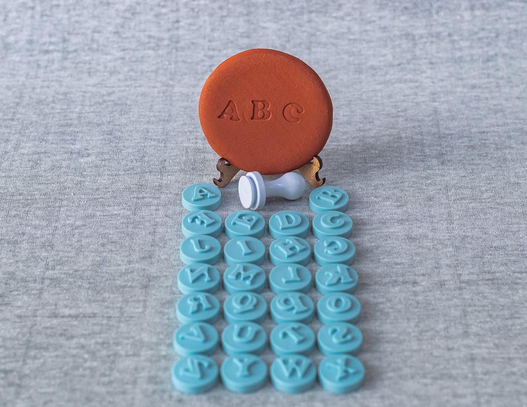 O Kit Carimbos Alfabeto inclui todas as 26 letras do alfabeto de A a Z, com 25mm de diâmetro, perfeitas para personalizar seus projetos.