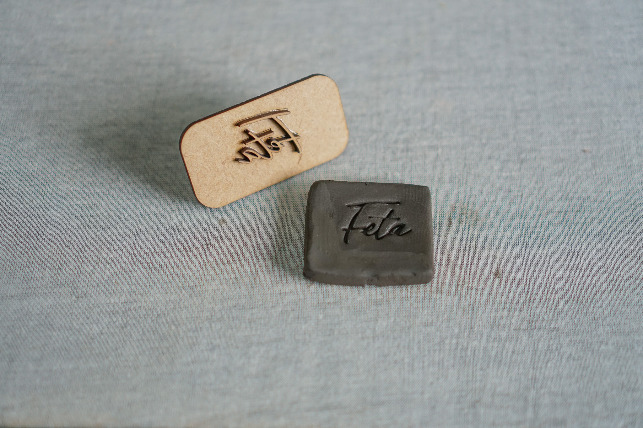 Este carimbo em MDF, com a palavra "FETA", é perfeito para adicionar um toque personalizado e encantador aos seus projetos.
