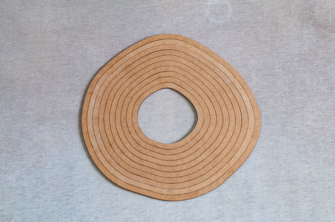 Guias de corte concêntricas em formato orgânico feitas em MDF 3mm, com 10 tamanhos diferentes.