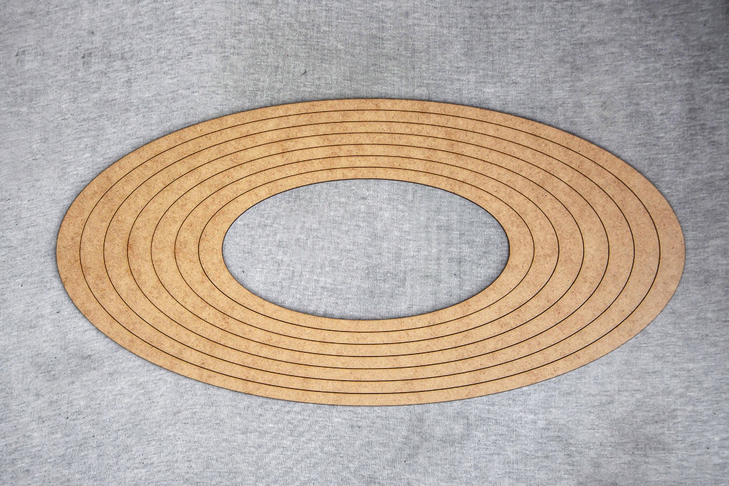 Guias de corte concêntricas em formato oval feitas em MDF 3mm, com 7 tamanhos diferentes.