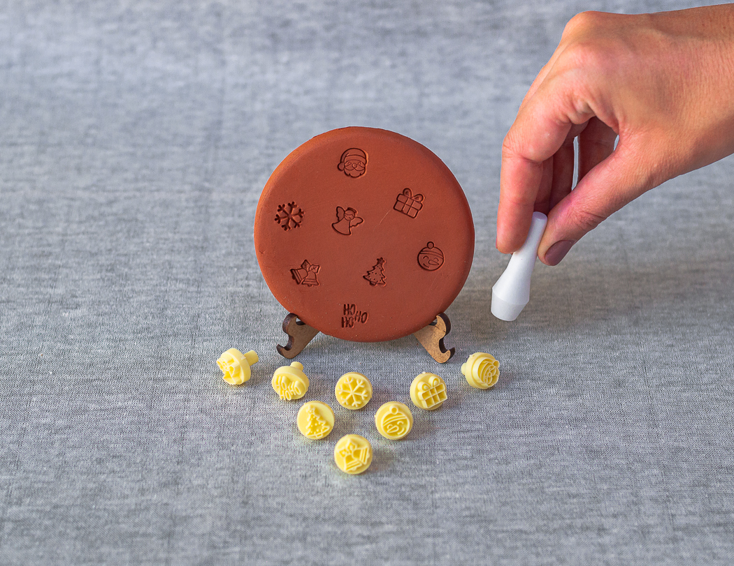 O Kit Carimbos Natal inclui 8 carimbos de 12mm com motivos encantadores do Natal:
