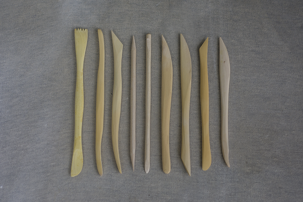 Este kit é composto por 9 estecas pequenas de madeira com pontas variadas para modelagem, acabamento e etc.