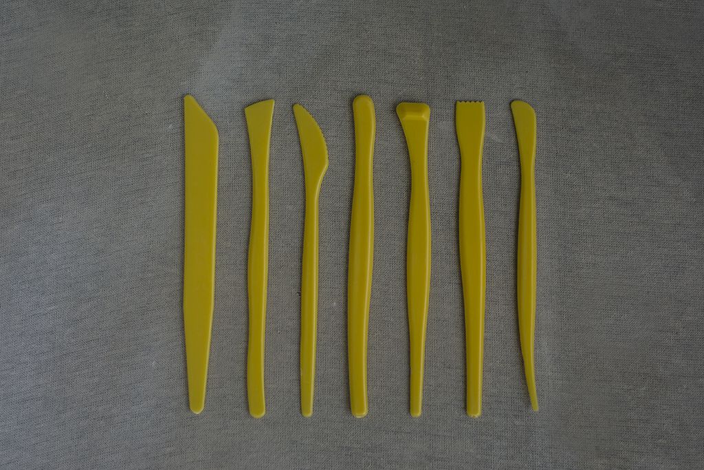 Este kit é composto por 7 estecas plásticas com pontas variadas, ideais para modelagem e acabamento.