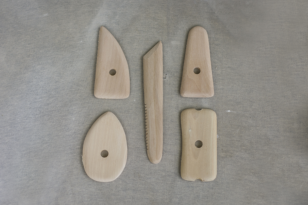 Este kit é composto por 5 raspadores de madeira com formatos variados.