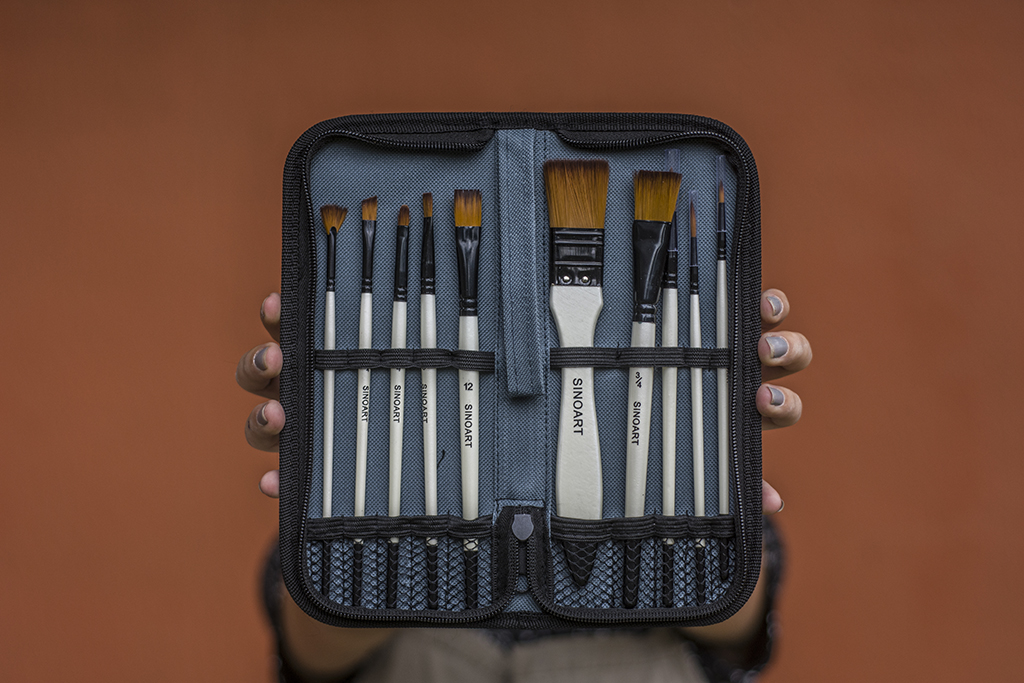 Composto por 10 pincéis de cabo curto Sinoart, acomodados em um prático estojo exclusivo de poliéster com fechamento em zíper.