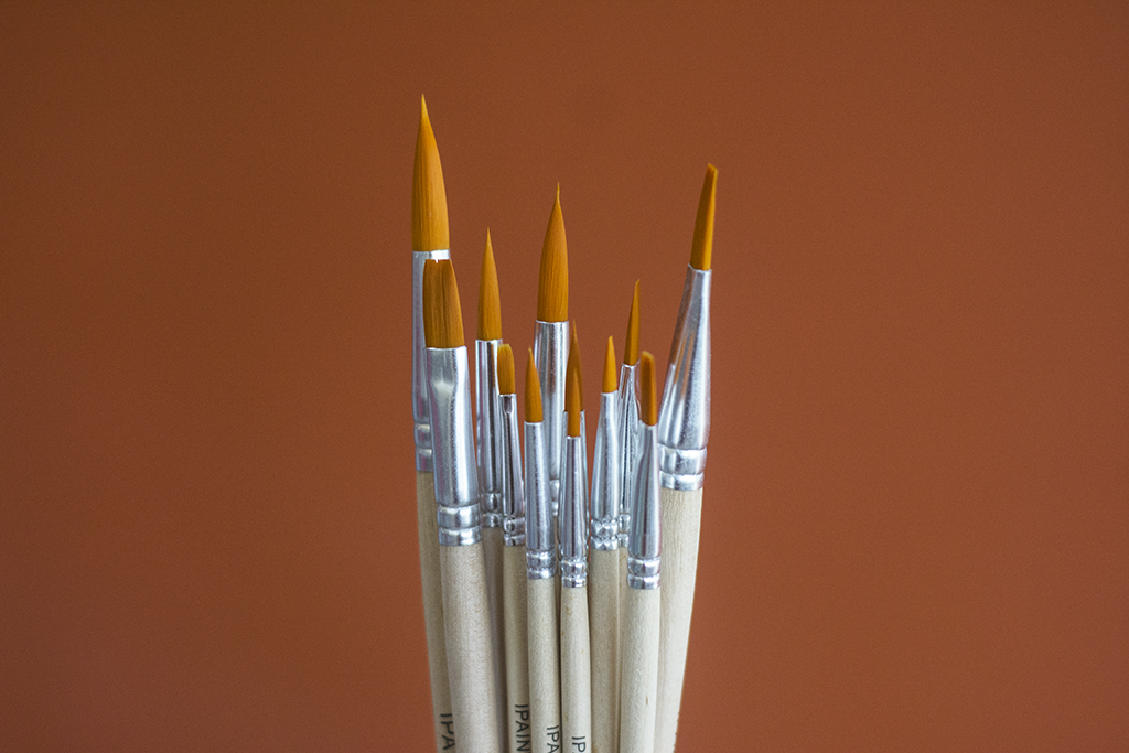6 pincéis redondos nos tamanhos 02, 04, 06, 08, 10 e 12