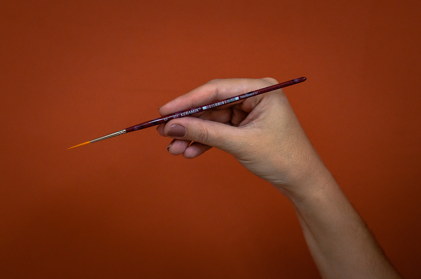 Para técnicas decorativas, linhas finas, pequenos detalhes e assinaturas.